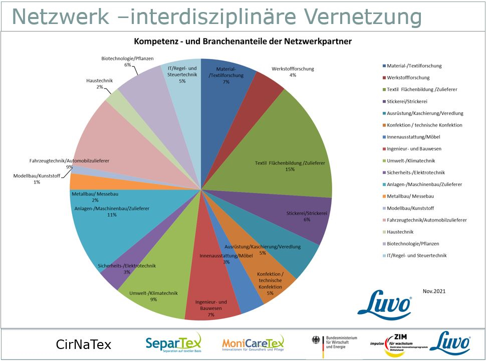 Entwicklung von nachhaltigen textilen und nicht textilen Produkten und Verfahren nach dem Prinzip „Design for Recycling“. Das Netzwerk startete seine Arbeit Ende 2021.